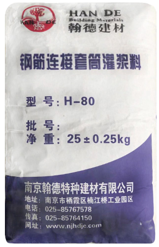 南京翰德特種建材有限公司是一家集開發、生產、銷售、管理于一體的現代化企業。我公司專業生產高強無收縮灌漿料,現擁有客運專線專用型、H-40、H-60、CGM、特種灌漿料等五大系列。 我公司成立以來,通過技術創新、完善企業經營管理,客戶已遍及江蘇、山東、河南、浙江、福建等省市,目前公司產品年生產能力30000。已有多項規格品種產品分別獲國家專利、省市名牌,并被列為國家星火計劃、國家火炬計劃,產品產銷量居全國同行業前列,已形成以南京、阜陽兩大生產基地為主體,以南京翰德特種建材有限公司為前沿,兩地互為依托、同步推進的產業發展格局。